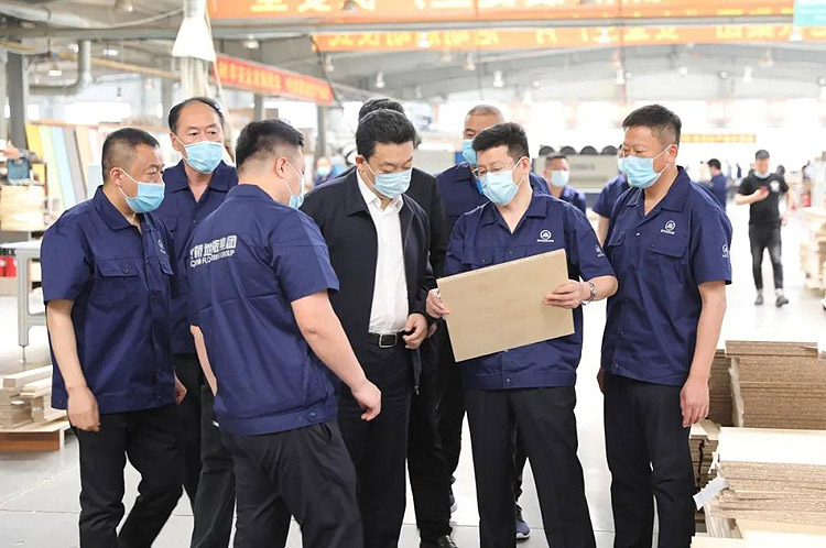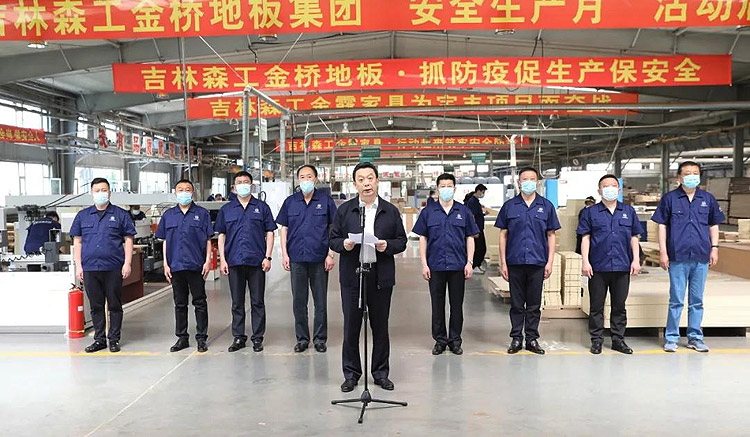 5月29日,吉林森工集团党委书记、董事长王树平在金桥地板集团分会场参加全省“安全生产月”和“白山松水安全行”活动启动视频会,并调研指导安全生产工作。