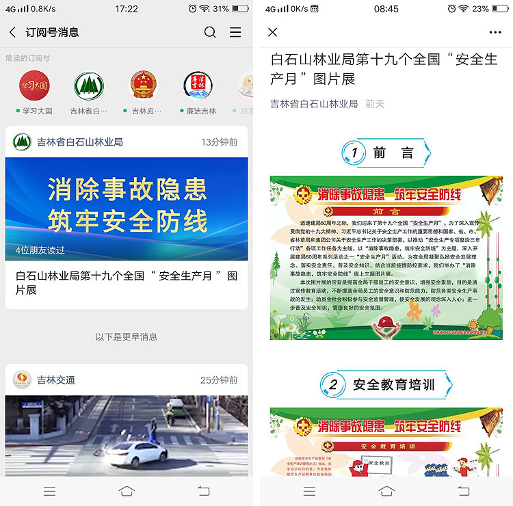 二是利用微信平台,举办安全生产法律法规、安全生产知识网上宣传教育板报展览活动,大力宣传安全生产方针政策、法律法规、安全科普常识等。