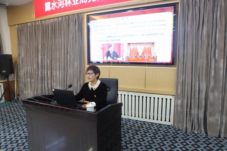 陈丹围绕宣讲主题,从全会通过《决议》的重大意义、《决议》的基本框架和主要内容以及把学习贯彻全会精神要求落实好三个方面,采用PPT形式,对党的十九届六中全会精神进行了全面宣讲和深入解读。陈丹在宣讲中指出,党的十九届六中全会是在党成立一百周年的重要历史时刻,在党和人民胜利实现第一个百年奋斗目标、全面建成小康社会,正在向着全面建成社会主义现代化强国的第二个百年奋斗目标迈进的重大历史关头召开的一次十分重要的会议。全会通过的《中共中央关于党的百年奋斗重大成就和历史经验的决议》,是一篇马克思主义的纲领性文献,是新时代中国共产党人牢记初心使命、坚持和发展中国特色社会主义的政治宣言,是以史为鉴、开创未来、实现中华民族伟大复兴的行动指南。全会取得的重大成果、作出的重大部署,特别是强调维护“两个确立”,对统一全党思想和行动、在新时代更好开创党和国家事业新局面,具有重大现实意义和深远历史意义。陈丹要求露水河林业局党委要进一步把学习、贯彻、宣传全会精神引向纵深,进一步在全局范围内兴起学习、贯彻全会精神的新热潮。