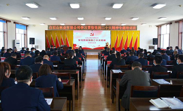 4月20日,白石山林业公司党委举办学习贯彻党的二十大精神专题培训班,领导班子成员、全体中层干部、省林草局驻公司办事处中层干部、机关全体党员、部分基层党员参加培训。