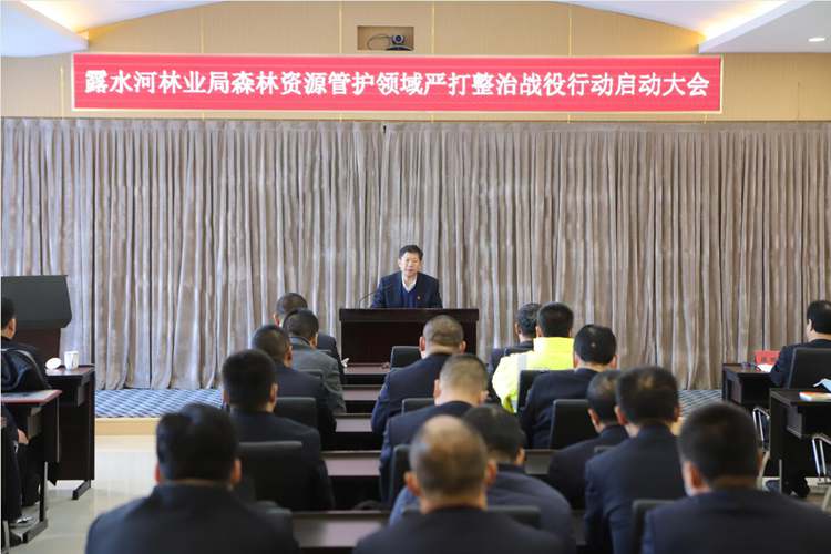 | 露水河林业局为持续巩固并不断扩大四年来开展的"查、整、打""严管严打""三保一打""四打两清"保护森林资源专项行动成果,始终保持严管严打涉林违法犯罪行为的高压态势,确保森林资源安全,11月26日上午,该局森林资源管护领域严打整治战役启动大会在局机关一楼会议室召开。局领导班子成员,省林草局驻露森林资源监督专员关亚军,林业行政执法办公室负责人,露水河森林公安分局党委书记、局长于宝库,副局长韩贵森,森林案件侦查大队、交警大队、各中心派出所负责人,局机关处室和基层单位负责人,受表彰的先进班组负责人和先进个人代表70余人参加会议。  会上,副局长孙大海全面传达了《关于在全局森林资源管护领域开展严打整治战役行动的实施方案》,对今冬明春严厉打击乱砍盗伐林木、乱捕滥猎野生动物、私收滥购"黑材"、无证"黑车"入山私运木材等违法行为以及全面加强森林资源流通领域管理、境外物种检疫管理和森林资源管护队伍建设管理七个方面的重点工作进行了安排部署,细化了职责分工,提出了具体要求。