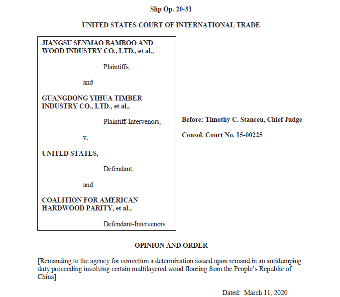 首胜!中国企业就美对华木地板反倾销调查复审终裁提起诉讼成功。 在国际贸易中维护自身权益!