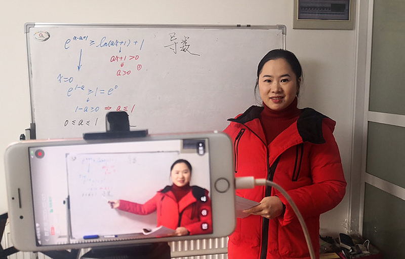 辽宁省沈阳市苏家屯区青松中学杜波老师在家中通过网络平台给同学们上化学课(3月11日摄)。