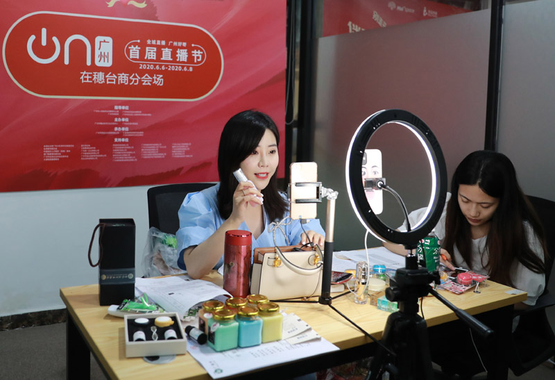 6月6日,广州启动“首届直播节”活动,这是主播在广州市白云区台商分会场直播带货。