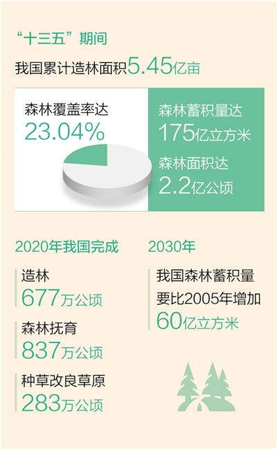 记者从全国地方关注森林活动工作交流座谈会获悉:我国森林面积和森林蓄积量连续30年保持“双增长”。“十三五”期间,我国累计造林5.45亿亩,森林覆盖率达到23.04%,森林蓄积量达到175亿立方米,森林面积达到2.2亿公顷。