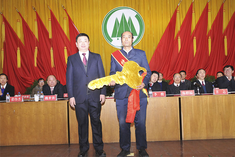 “从伐木劳模到育林英雄,27年的无私奉献,绿了荒山,白了头发;清了溪水,驼了脊背。汗水、泪水和苦水相偎依,誓言因此崇高而庄严。您是吉林森工的一面旗帜,大山深处的一座路标。”1月28日,在吉林森工红石林业局的职工代表大会上,赵希海获得了年度特别贡献奖,给他的奖励是局址地区一套53平方米的新房。