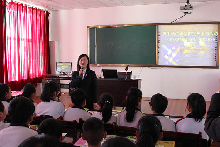 活动中,野生动植物保护人员详细讲解了加强生态文明建设和保护野生动植物的重要意义;向师生们发放了野生动植物保护宣传图例及野生动植物保护宣传单,并通过PPT演示文稿向同学们展示了泉阳林区的各种野生动植物图片,讲解了各种野生动植物的种类、保护级别和生存状况以及在地球生态系统中的地位作用。在互动答题活动中,同学们争先恐后,踊跃回答问题,并提出了许多好的意见和建议。宣传活动在野生动植物保护人员与同学们共同呼喊“保护野生动物就是保护我们人类自己”的口号声中结束。