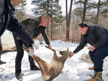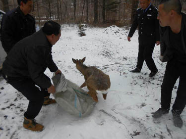 为确保野生动物存活,4月1日上午,红石森林公安分局二道沟中心派出所会同红石林业局野生动物保护协会工作人员和二道沟林场林政科工作人员,一同将两只野生狍子放生回归大自然。 民警提醒林区广大群众,如果在路边或林内遇到野生动物,出于安全考虑应及时报警,千万不要盲目救助和放生。野生动物受国家法律保护,非法猎捕一定数量和国家重点保护动物将依法追究刑事责任。 |