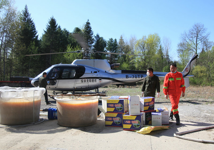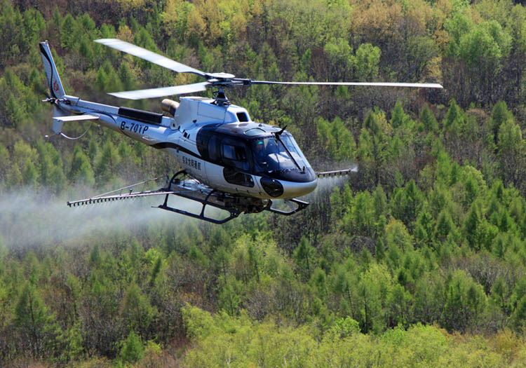 5月14日中午时分,一架轻型直升机在临江林业局柳毛河林场上空盘旋,对林场的松林区域实施喷药防虫作业。党委书记、局长李洪涛,副局长王波、张堡宸,在相关部门人员的陪同下来到林场,现场查验和督导飞机防治松毛虫作业。 据春季调查数据显示,今年临江林业局松毛虫害发生面积达到4000多公顷。目前,正是松毛虫在松林树梢上“暴饮暴食”的时期,也是喷药防治的有利时机。为迅速大幅度降低松毛虫的种群密度,有效防控落叶松毛虫灾情,保护森林资源安全,临江林业局对闹枝林场、桦树林场、柳毛河林场等虫口密度较高、发生危害较重,且集中连片的松林展开了飞机防治作业。