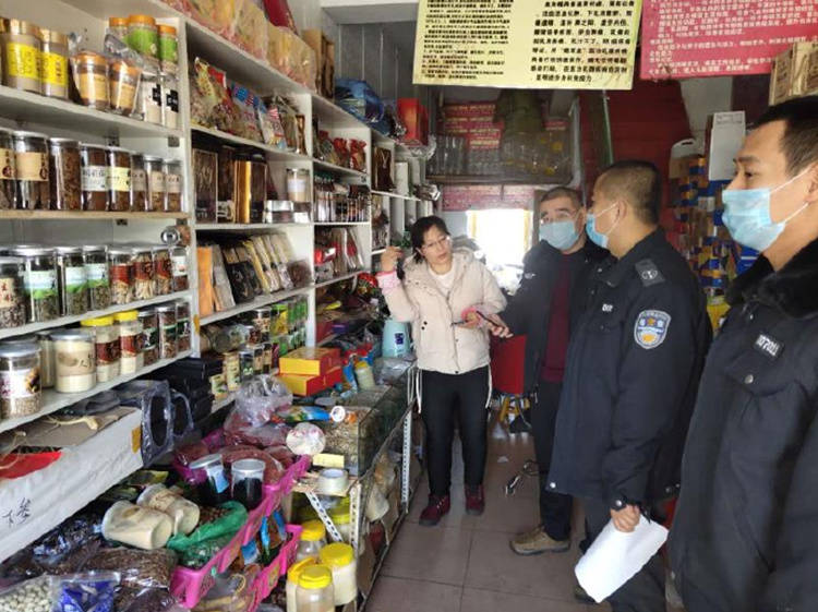 为使专项行动取得实效,联合行动检查组人员先后到白石山和黄松甸辖区内的饭店、土特产店、农贸市场等经营场所,相继开展了集中宣传和专项检查工作。首先利用宣传车在辖区开展了野生动物保护法的宣传工作,为居民发放了保护野生动物的宣传海报,在文化广场和居民区悬挂了宣传条幅,营造了良好的舆论氛围。随后,又对两个镇内辖区的经营场所和商户进行了走访调查,认真查看是否有贩卖野生动物等非法行为,并发放了《吉林省市场监督管理厅和草原局畜牧业管理局关于禁止野生动物交易的公告》,同商户签订了《野生动物保护责任书》,要求不能从事贩卖和食用野生动物等违法行为。