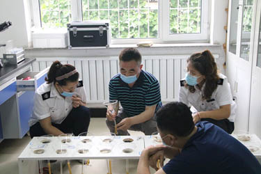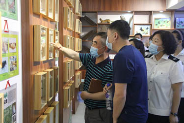 汇报工作结束后,督导组查看了长白山生物标本室和实验室,对标本采集制作技术进行了现场培训,对松材线虫病分离检测仪器和设备的应用进行了规范演示和详细指导。